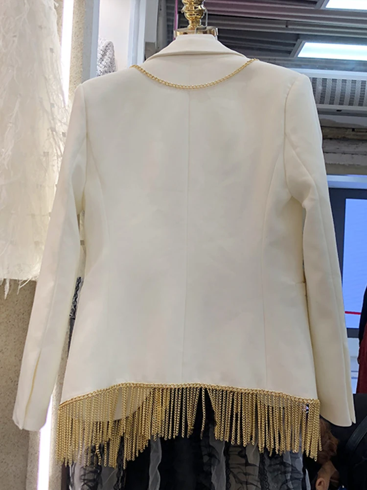 BEST Heavy crafts handmade custom metal chain hem fringed suit jacket ladies spring personality fashion