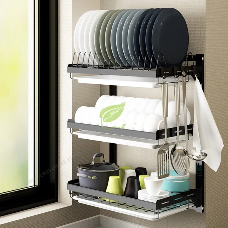 BEST Multifunction Drying Rack Kitchen Cup Holder Storage Shelf Rack Kitchen Support Wall Hooks For Pots