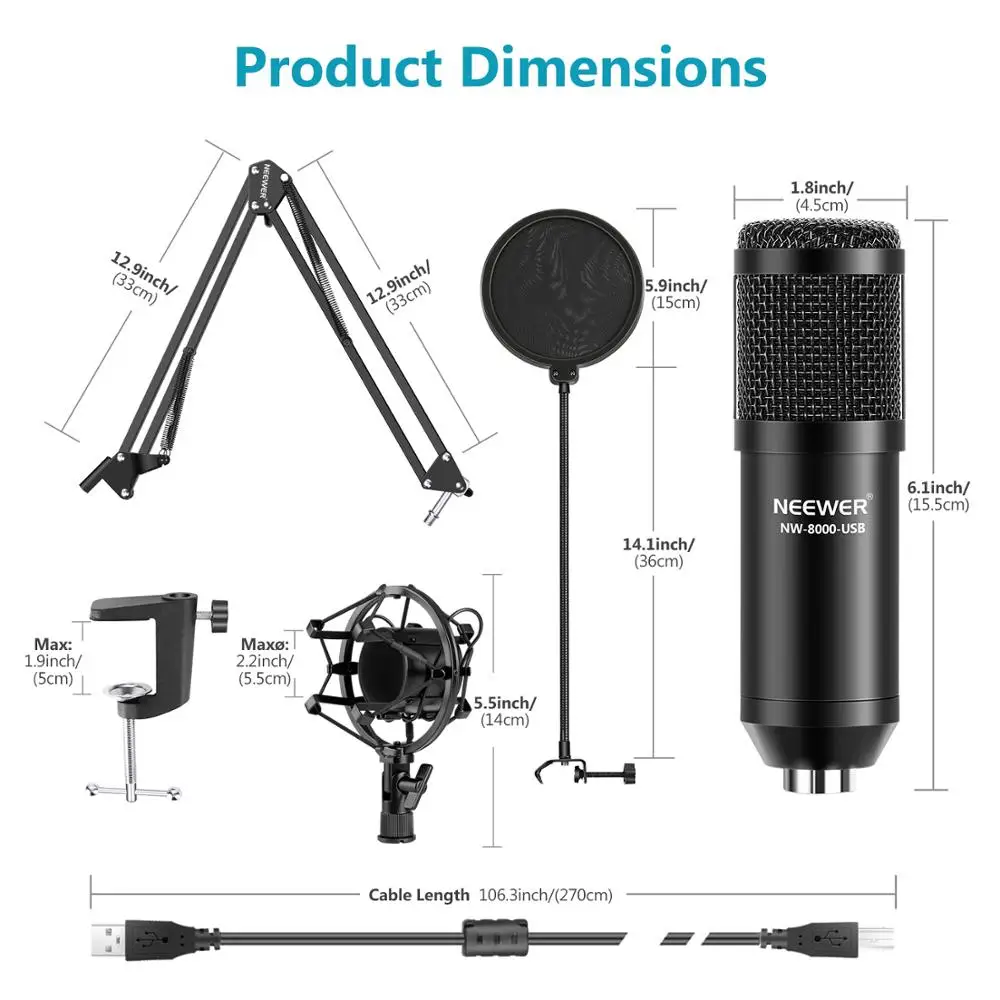 BEST SELLER Neewer USB Microphone Kit 192KHZ/24BIT Plug&Play Computer Cardioid Mic Podcast Condenser Microphone