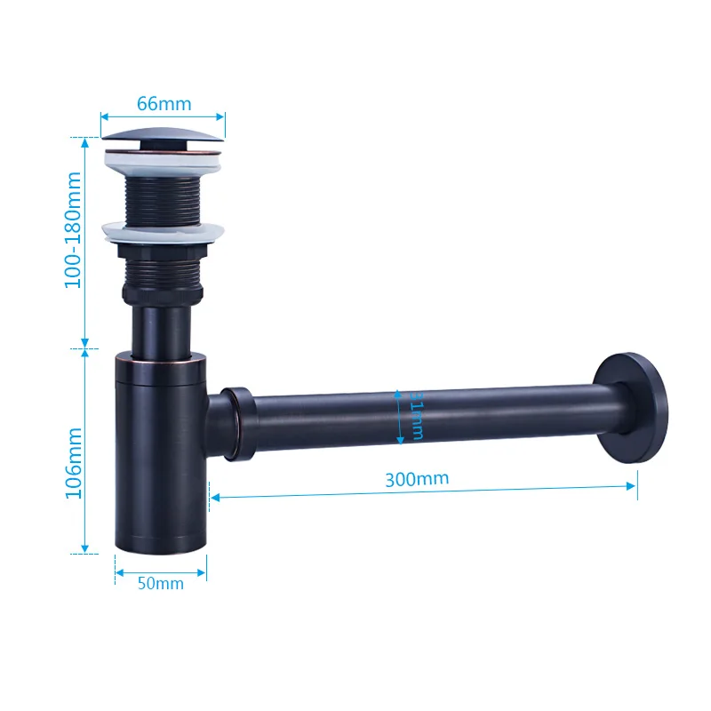 Basin Bottle Trap Metal Bathroom Sink Siphon Drains with Drain Black P-Trap Pipe Waste Without Over