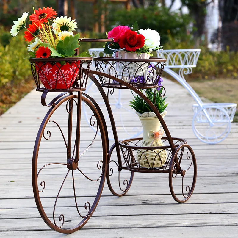 European style iron bicycle flower stand metal basket flower racks bicycle lovers metal garden deco