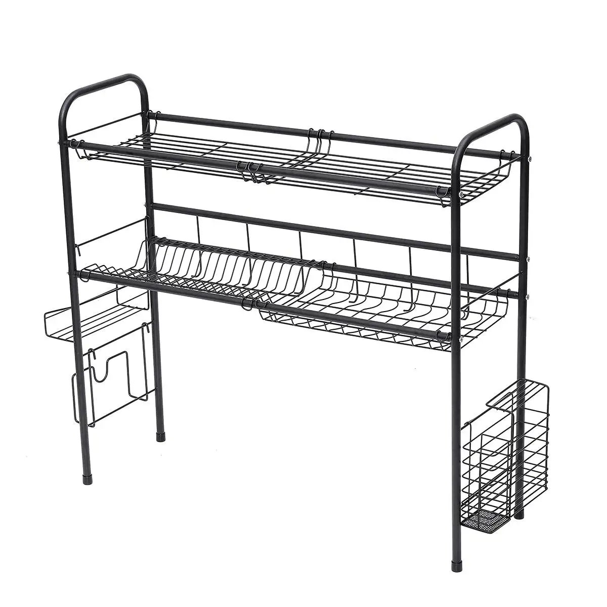 2 Tier Multi-use Stainless Steel Dishes Rack Dual Sink Drain Rack Adjustable Kitchen Oragnizer Rack