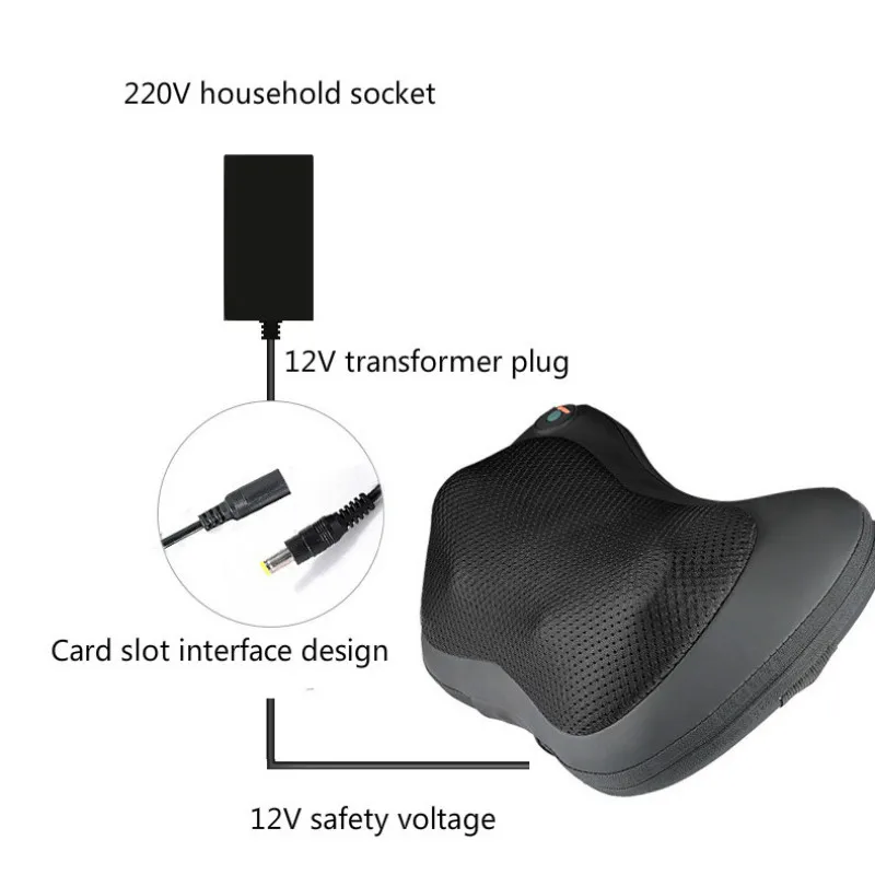 Four-head Car Massage Pillow Electric Cervical Massager Household Infrared Heating Kneading Shoulde